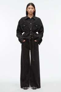 This denim jacket is cut from stone and enzyme washed denim to a boxy silhouette that encapsulates New York City’s experimental energy. Create additional volume by gathering the sleeves and cinching the waist with adjustable self-ties. - 100% Cotton - Adjustable self-ties - Intended look is oversized, size down if you prefer a more fitted look - Professional dry clean only - Model is 5'10', Bust: 30', Waist: 23', Hips: 34' and wearing a size Small