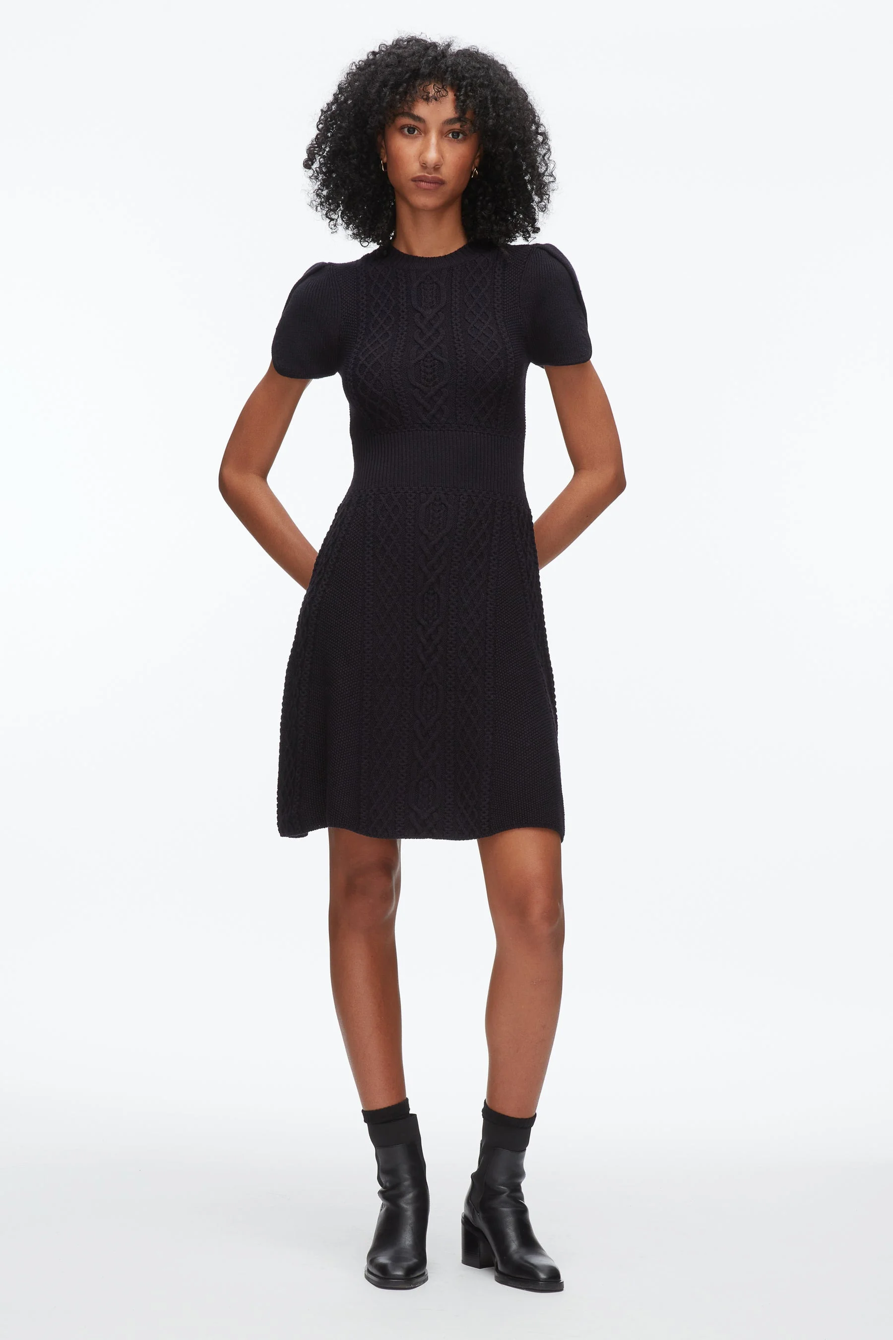 Knit from 100% extra fine merino wool, our signature tulip dress features a fit-and-flare silhouette with an engineered waist and overlapping sleeves for a contoured, ultra-flattering fit. A mix of cable and rib stitches adds rich texture, while the midweight yarn offers seasonless wearability. Pair it with boots and a jacket now, or wear it solo as the weather warms. - 100% Wool - Model is 5'10', Bust: 30', Waist: 23', Hips: 34' and wearing a size 4 - Professional dry clean only
