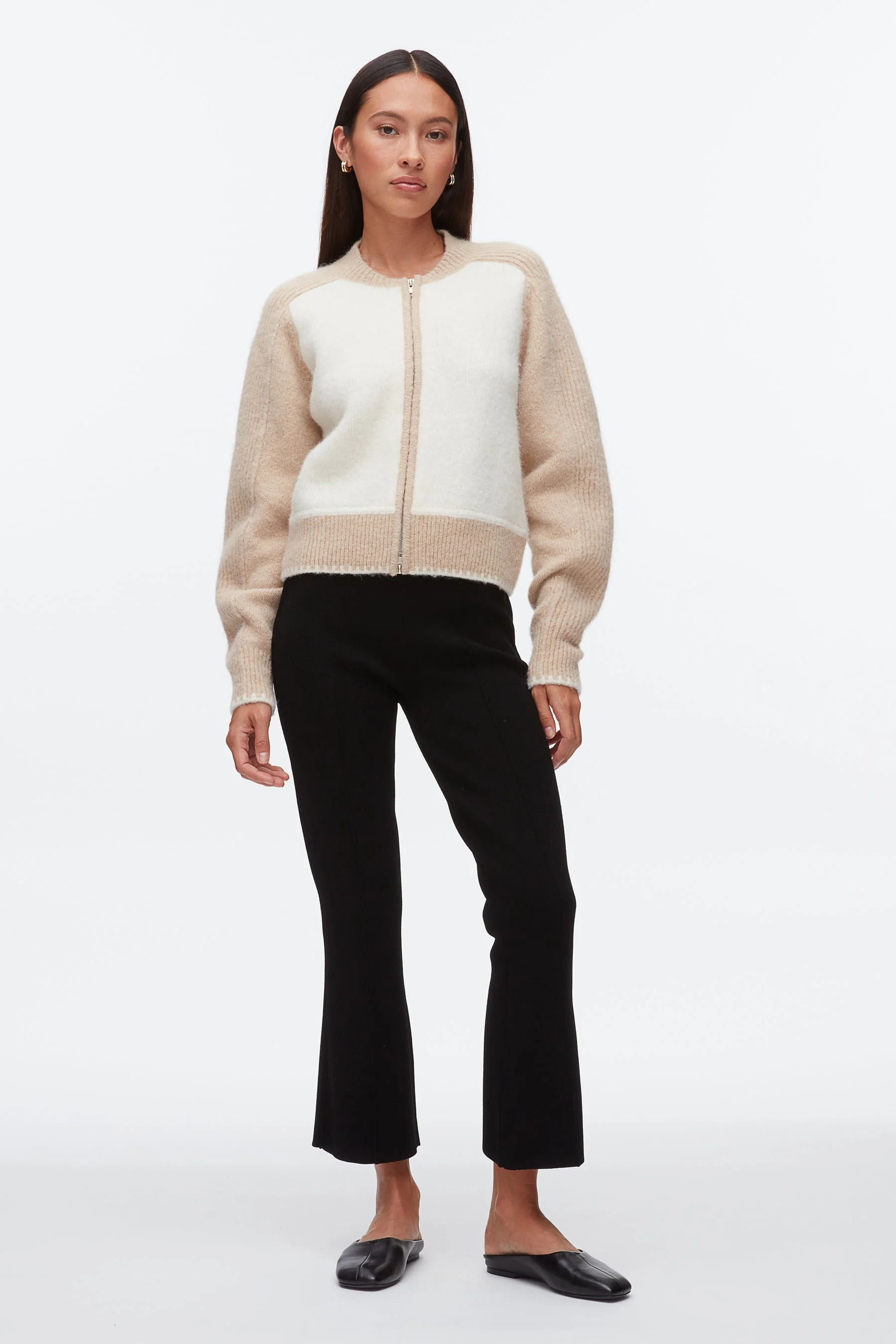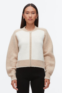 Lightweight, cozy, and luxuriously soft—this baby alpaca zip-up cardigan is a modern essential with subtle edge. Crafted in a refined two-tone color block, it features blanket stitch detailing at the sleeves and hem. The clean lines and easy silhouette make it endlessly versatile—perfect for layering over everything from dresses to denim. - 78% Alpaca, 20% Polyamide, 2% Elastane - Model is 5'10', Bust: 30', Waist: 23', Hips: 34' and wearing a size 4 - Professional dry clean only
