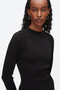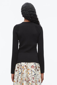 A polished essential with subtle charm. Crafted from a fine-gauge viscose blend, this compact knit top features engineered rib textures that gently contour the body. Long raglan sleeves and a high neckline offer quiet refinement, while the feminine silhouette makes it endlessly versatile—sleek under a blazer, soft with a pleated skirt, or casual with denim for everyday wear. - 71% Viscose, 29% Nylon - Model is 5'10', Bust: 30', Waist: 23', Hips: 34' and wearing a size 4 - Professional dry clean only