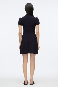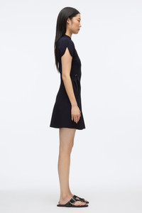 A refined take on modern femininity, this mini dress is a shorter interpretation of the Compact Rib Tulip Dress. Designed with a flattering fitted silhouette, it features softly sculpted tulip sleeves, a high neckline, and functional side tabs for subtle utilitarian detailing. The compact rib knit offers structure and stretch, ensuring both comfort and a polished look. Effortless yet elevated, this versatile piece can be styled as a standalone dress or layered over tailored pants for a contemporary edge. - 83% Viscose 17% Polyester - Model is 5'10', Bust: 30', Waist: 23', Hips: 34' and wearing a size 4 - Professional dry clean only