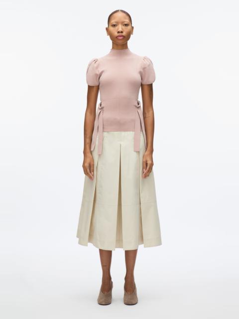 Our iconic Tulip silhouette, reimagined in a sleek, compact viscose rib for ultimate versatility. Designed with a modern mock neck and belted waist detail, this top seamlessly transitions from day to night. Pair it with our Wide Leg Belted Jean for an effortlessly polished, off-duty look. - 83% Viscose, 17% Polyester - Model is 5'10', Bust: 30', Waist: 23', Hips: 34' and wearing a size Small - Professional dry clean only