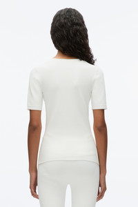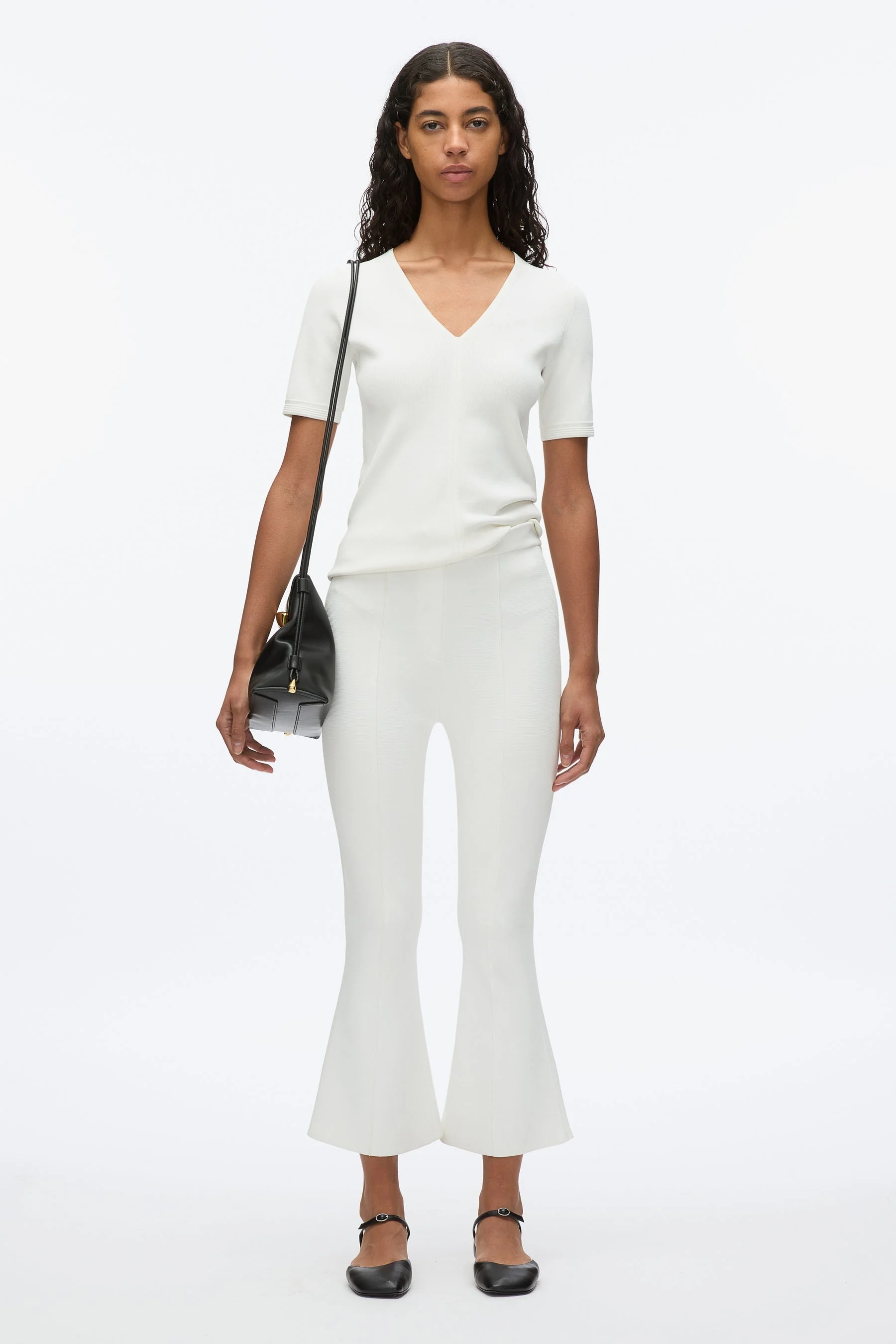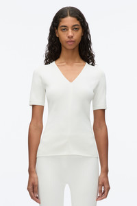 Knitted from compact viscose rib, this flattering fit v-neck top is meant to be the foundations of your wardrobe. Whether worn on its own or layered under jackets, it offers the perfect balance of style and versatility, seamlessly transitioning from day to night. - 83% Viscose, 17% Polyester - Model is 5'10', Bust: 30', Waist: 23', Hips: 34' and wearing a size Small - Professional dry clean only