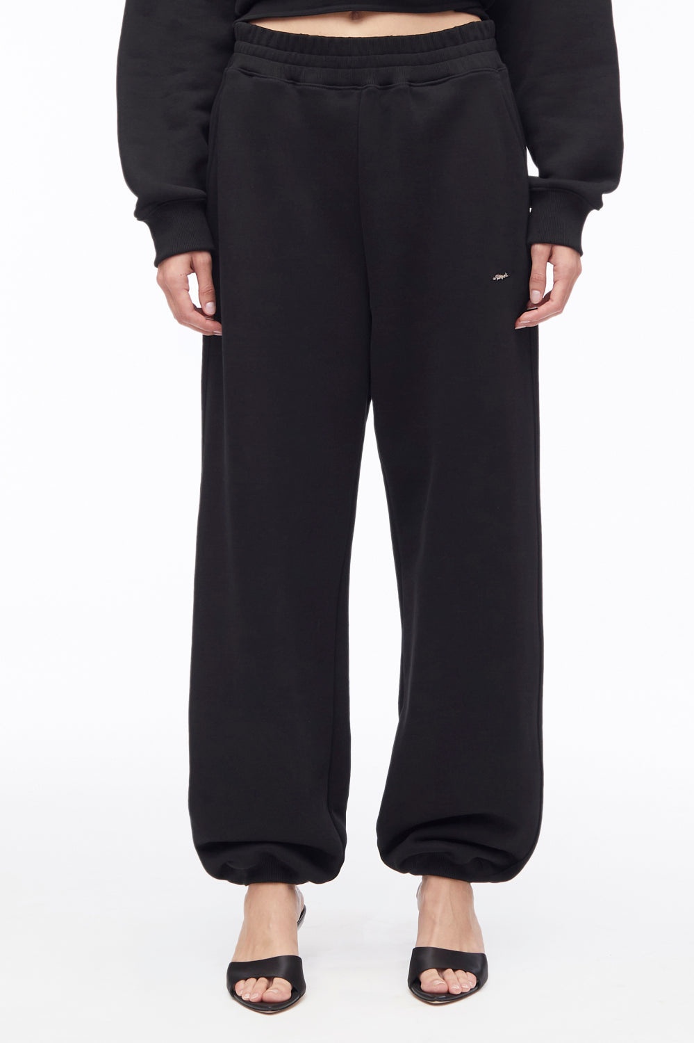 Sweatpant in compact french terry cotton with an elasticated waist and internal drawstrings. Side slip pockets. Ribbed knit cuffs. Relaxed fit. This sweatpant runs large. For a closer fit, we recommend ordering one size smaller than your regular size. - Elasticated waist - Side slip pockets - Ribbed knit cuffs - Relaxed fit - Model Height: 5'10", Bust: 31", Waist: 23", Hips: 34" and wearing a size XS