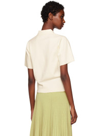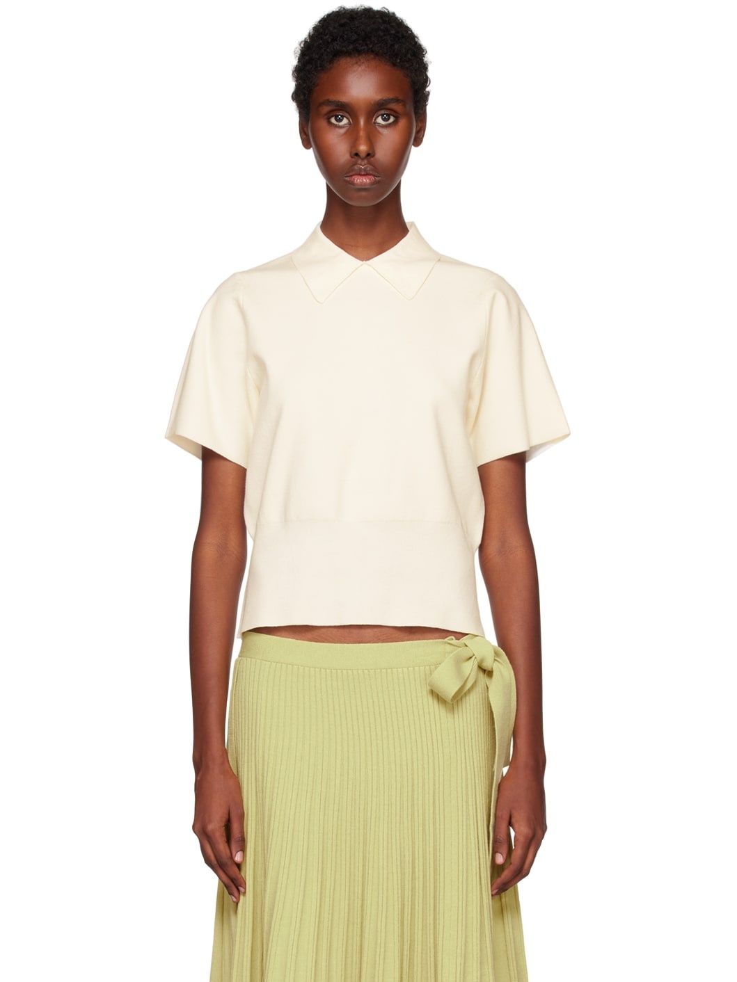 Knit stretch cotton-blend polo. Rib knit spread collar and hem. Supplier color: Cream 43% cotton, 28% nylon, 25% acetate, 4% elastane.