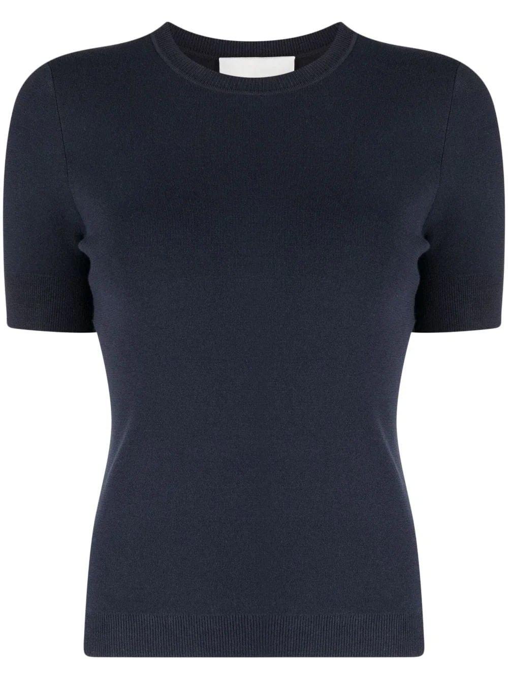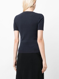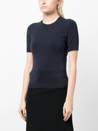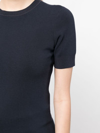 crepe-texture short-sleeve top Highlights - Midnight blue - Stretch-design - Knitted construction - Crepe texture - Crew neck - Short sleeves - Ribbed cuffs and hem Imported Composition Cotton 43%, Nylon 28%, Acetate 25%, Elastane 4% SIZE & FIT Model measurements Height 5 ft 9 in(1.76 m) Bust/Chest 31.1 in(79 cm) Hips 35.03 in(89 cm) Waist 24.4 in(62 cm) FittingInformation Designed for a close fit throughout Made with a midweight knit, this piece offers some stretch Washing instructions Hand Wash