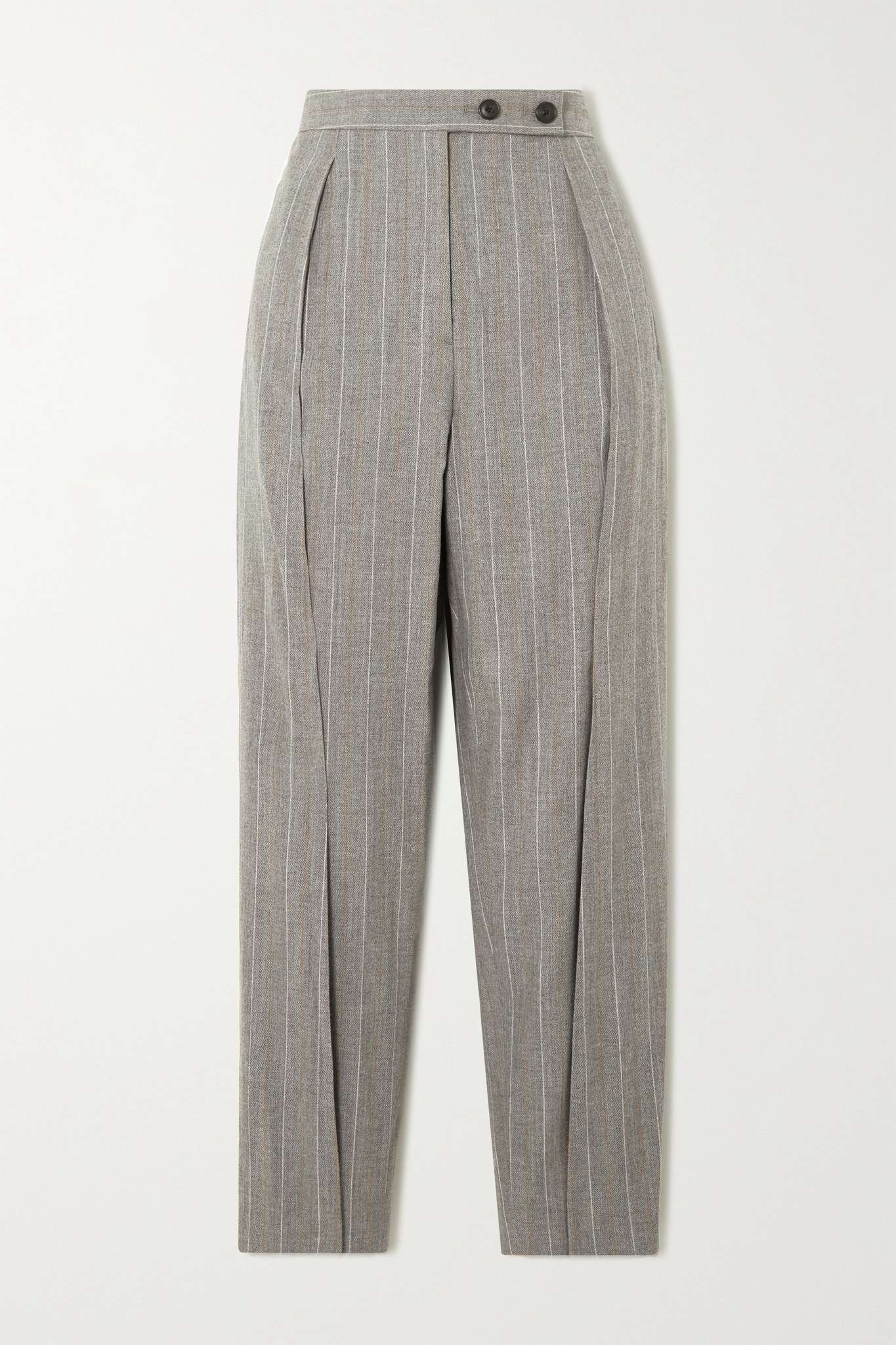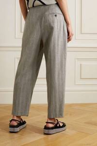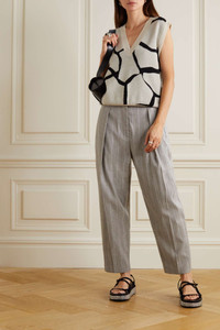 EDITORS'NOTES One of the best things about 3.1 Phillip Lim's tailoring is that it's so easy to wear - you could style these pants so many ways. Patterned with classic pinstripes, they're cut from a gray wool and cotton-blend with a high-rise waist and pleated, tapered legs. SIZE & FIT - Fits true to size, however those who are between sizes should take the smaller size - High-rise, cut for a loose fit, tapered at the hem - Cropped length - Mid-weight, non-stretchy fabric - Model is 177cm/ 5'10" and is wearing a US 2 DETAILS & CARE - Gray, white and brown wool and cotton-blend - Buttons and concealed zip fastening at front - 86% wool, 14% cotton; lining1: 80% polyester, 20% cotton; lining2: 100% cupro - Dry clean - Designer color: Nickel Multi