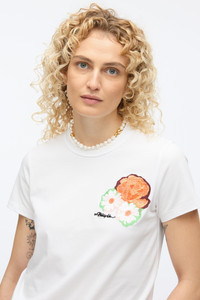 The first bloom of spring signals a fresh awakening, captured in our classic cropped tee. Adorned with a collaged bouquet of floral embroidery, it’s a vibrant nod to renewal and growth—perfect for breathing new life into your wardrobe. - 100% Cotton - Model is 5'10', Bust: 30', Waist: 23', Hips: 34' and wearing a size 4 - Professional dry clean only