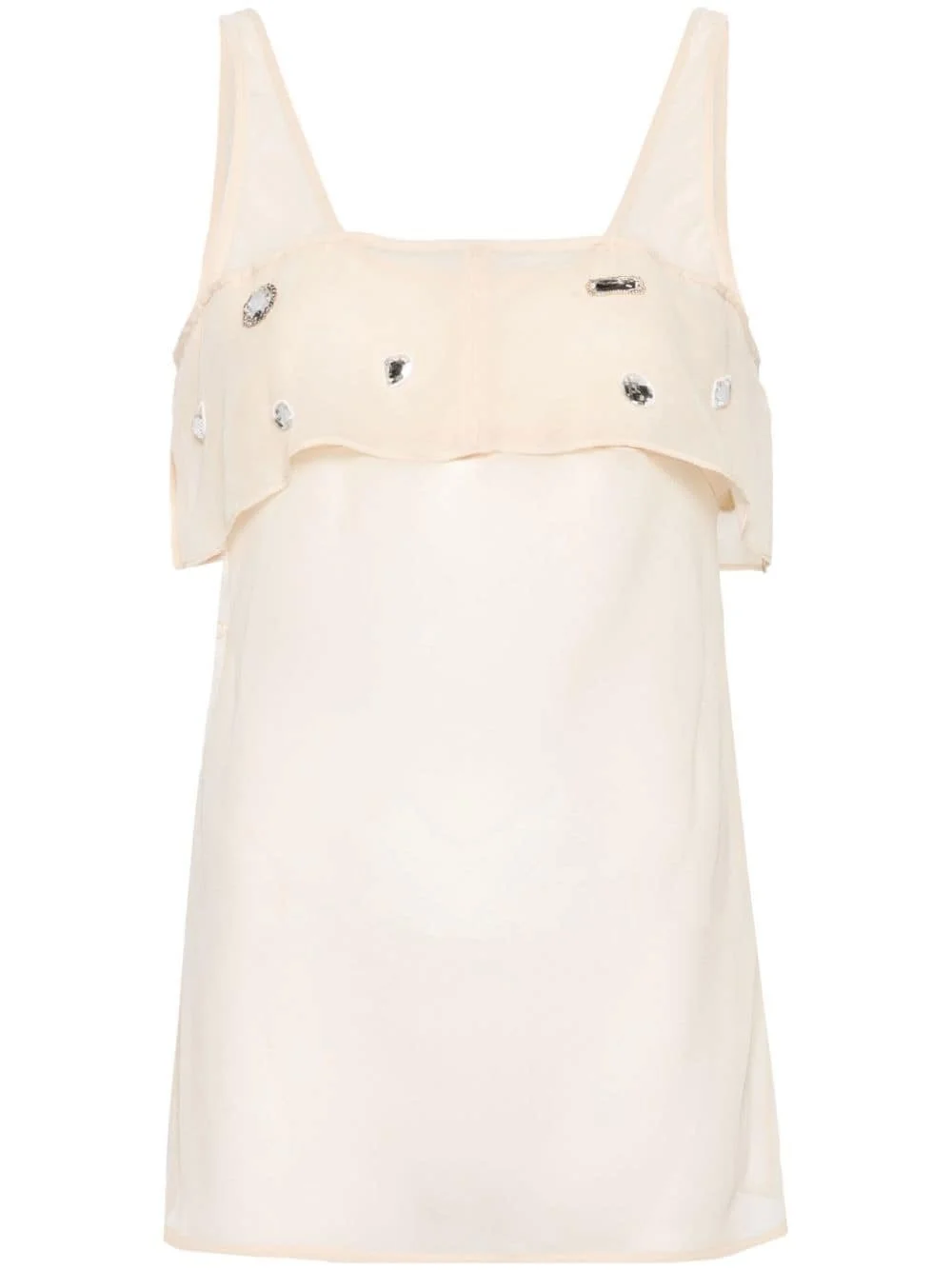 crystal-embellished sheer tank top Highlights - Light beige - Silk - Chiffon - Lightweight construction - Sheer coverage - Crystal and bead embellishment - Square neck - Sleeveless - Side press-stud fastening - Straight hem Imported Composition Silk 100%