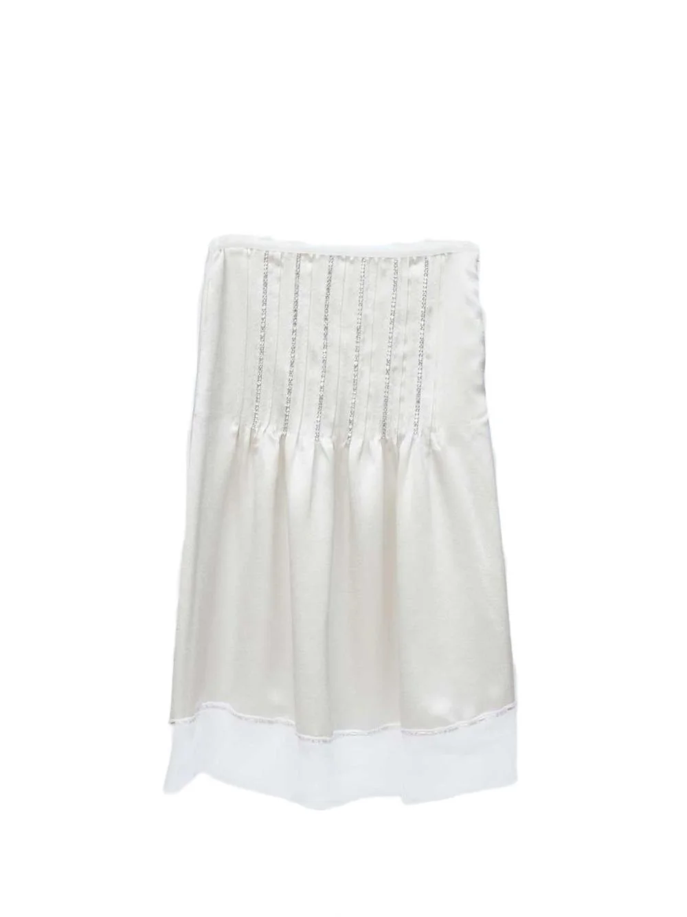 crystal-inlay embellished satin slip skirt Highlights - Platinum - Crystal embellishment - Pleated detail - Layered hem Imported Composition Outer: Viscose 62% Acetate 38% Washing instructions Specialist Cleaning