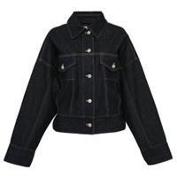 600078834DNM00S / E261-6538LID/00/DA402 - Front button closure with silver-tone buttons - Chest flap pockets with button closure - Classic pointed collar - Contrast topstitching detail - Long sleeves with button cuffs - Heavyweight cotton denim construction - Boxy oversized fit The 3.1 Phillip Lim Denim Boxy Jacket delivers contemporary streetwear with structured oversized silhouette and premium denim construction. Crafted from heavyweight cotton denim in rich indigo wash, featuring contrast topstitching and silver-tone button hardware throughout. The relaxed boxy fit and classic Western-inspired design create a versatile statement piece for modern wardrobes.
