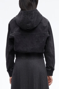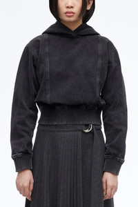 Experimental denim is in our DNA, and this hoodie continues the theme. In a signature black wash, it's cut to a louche silhouette with a drop shoulder and cropped hem that reflects streetwear styling. - Drop shoulders - Long sleeves - Patch at back - Ribbed-knit trims - Cropped straight hem - Relaxed fit - 100% cotton - Professional dry clean only - SKU: F23120037BWDWASHED BLK