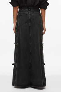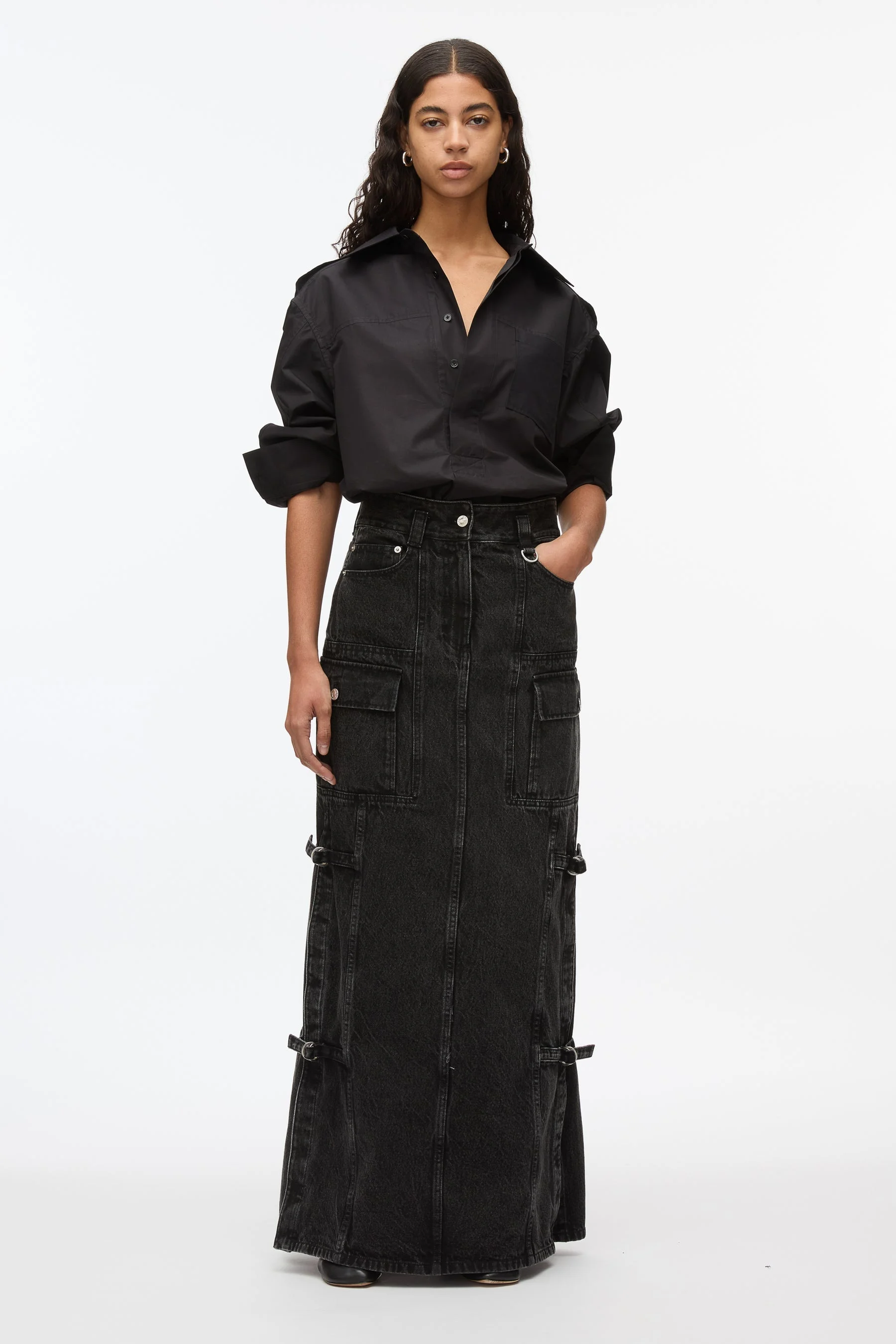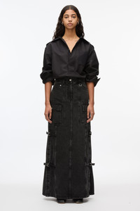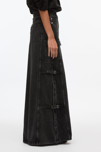 With a New York spirit in mind, our maxi denim skirt calls to energy of our city, gritty with youthful dreams. With cargo styling and multi-strap detail, it is a directional piece that is surprisingly versatile for off duty days. Cut in our washed black denim. - 100% Cotton - Model is 5'10', Bust: 30', Waist: 23', Hips: 34' and wearing a size Small - Professional dry clean only