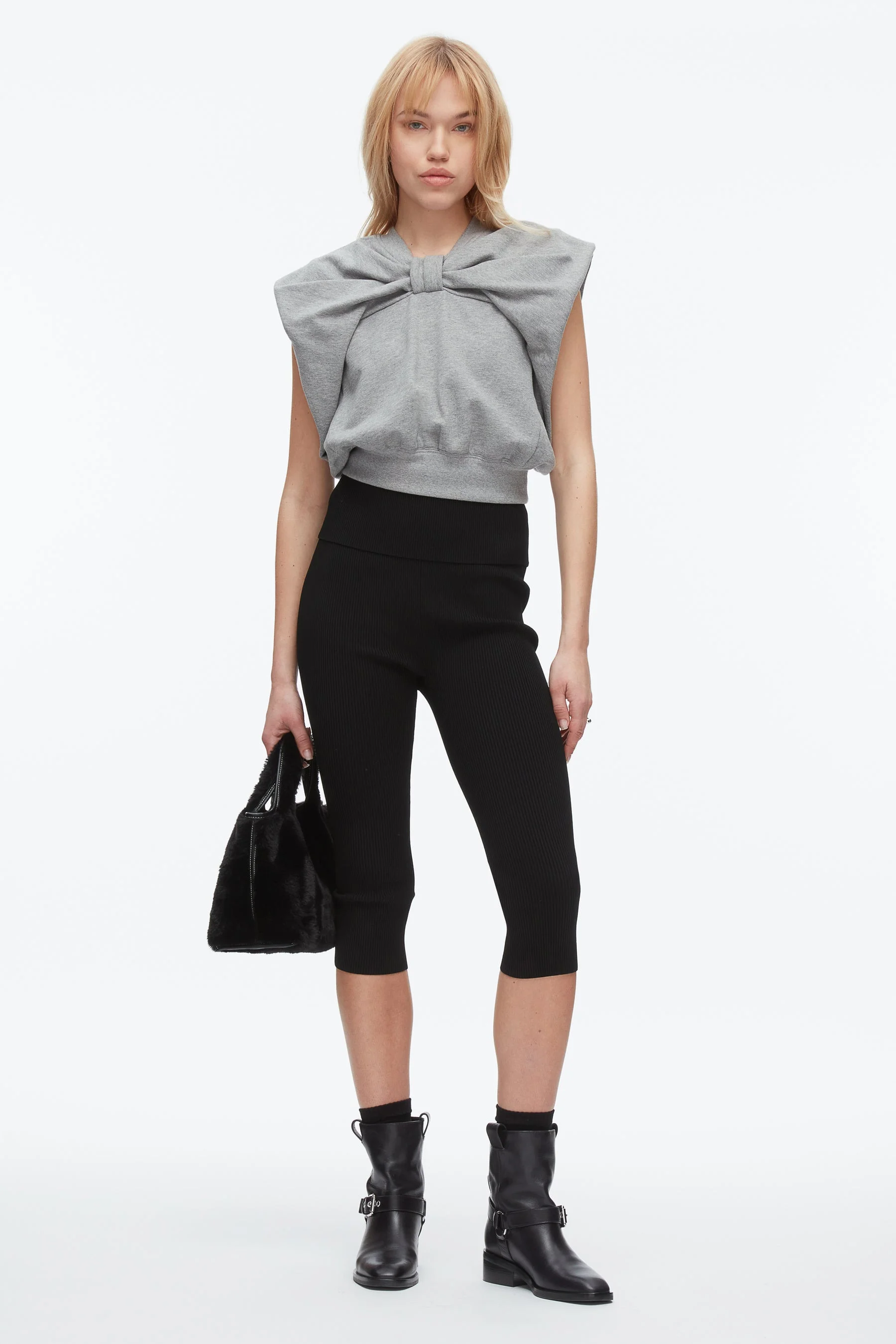 An ode to joyful dressing, this sleeveless sweatshirt reimagines a casual staple with playful charm. Crafted from soft French terry, it features an oversized bow detail that adds a dash of femininity—equal parts whimsy and confidence. The cropped, slightly boxy fit makes for effortless layering, whether over crisp shirting or worn solo. Designed for those with a sense of urban wanderlust, it celebrates the simple pleasure of dressing up just because. - 100% Cotton - Model is 5'10', Bust: 30', Waist: 23', Hips: 34' and wearing a size 4 - Professional dry clean only