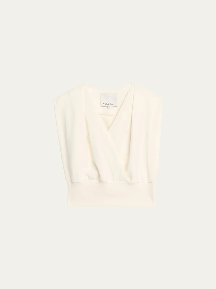 3.1 Phillip Lim draped top finished with a wide ribbed hem, crafted from soft French terry knit V neckline Sleeveless Boxy fit Hem sits at the hip Pullover style Cotton/nylon/polyamide/elastane Professional cleaning recommended Imported