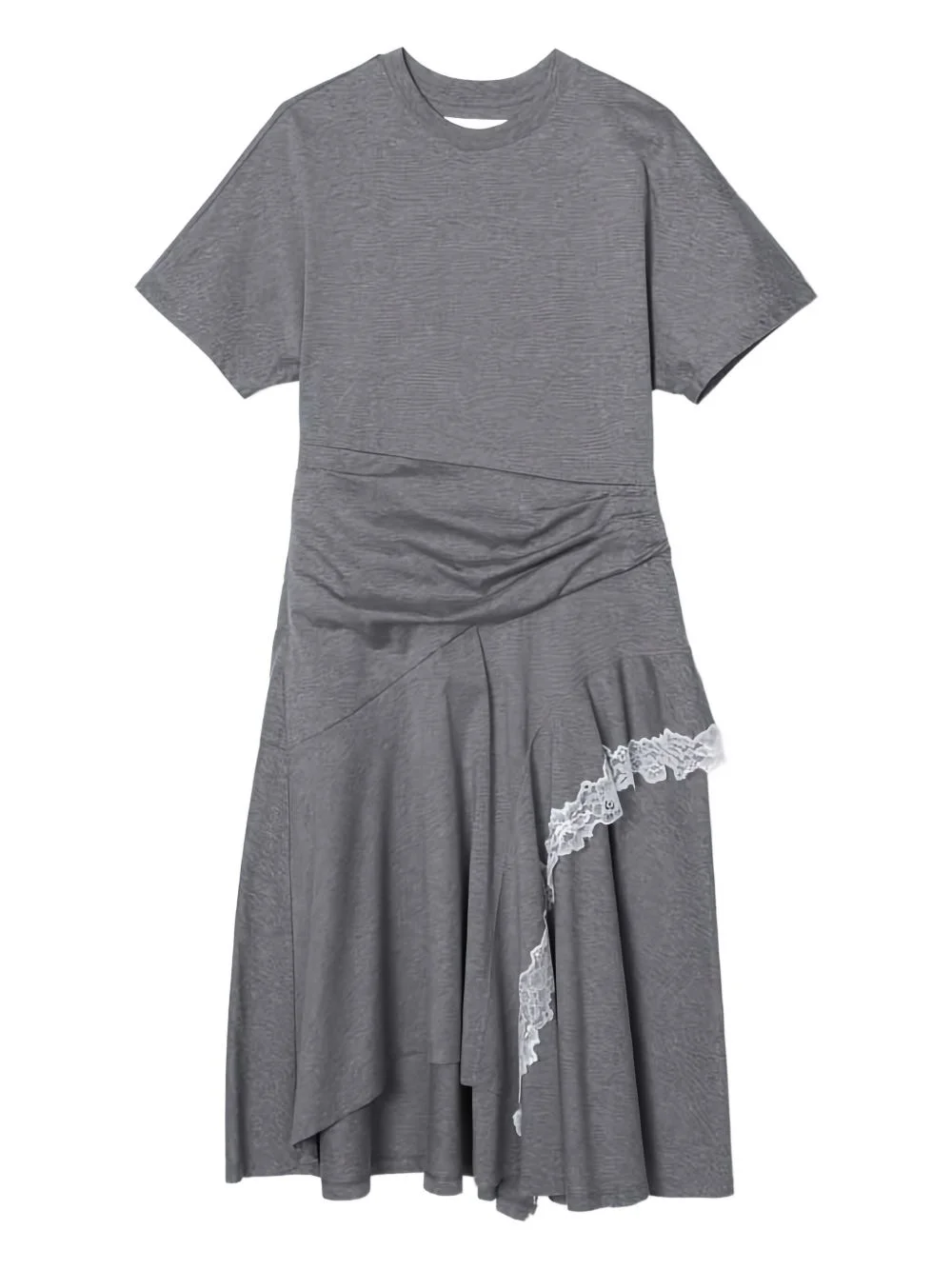 lace-trim ruffled asymmetrical dress Highlights - Grey - Cotton - Lace trim - Short sleeves - Round neck Imported Composition Cotton 100% Washing instructions Specialist Cleaning