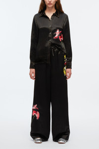 PS24 | These sleek pajama trousers are cut from lustrous satin to a fluid, wide-leg silhouette. Exotic flower appliques elevate them to evening wear status. - Satin - Elasticated waist - Floral appliques - Wide leg - Relaxed fit - 100% acetate - Professional dry clean only - Model Height: 5'10', Bust: 30', Waist: 23', Hips: 34' and wearing a size Small