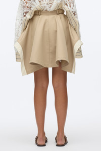 An elevated take on everyday ease. This structured A-line skirt features a handkerchief hem with fluid movement, blending sophistication and playful charm. Tailored in technical coated cotton, it’s detailed with pleats and a contrast curved hem. Style it with a silk blouse and sandals for a refined yet relaxed look that transitions seamlessly throughout the day. - 70% Cotton, 30% Polyester - Model is 5'10', Bust: 30', Waist: 23', Hips: 34' and wearing a size 4 - Professional dry clean only