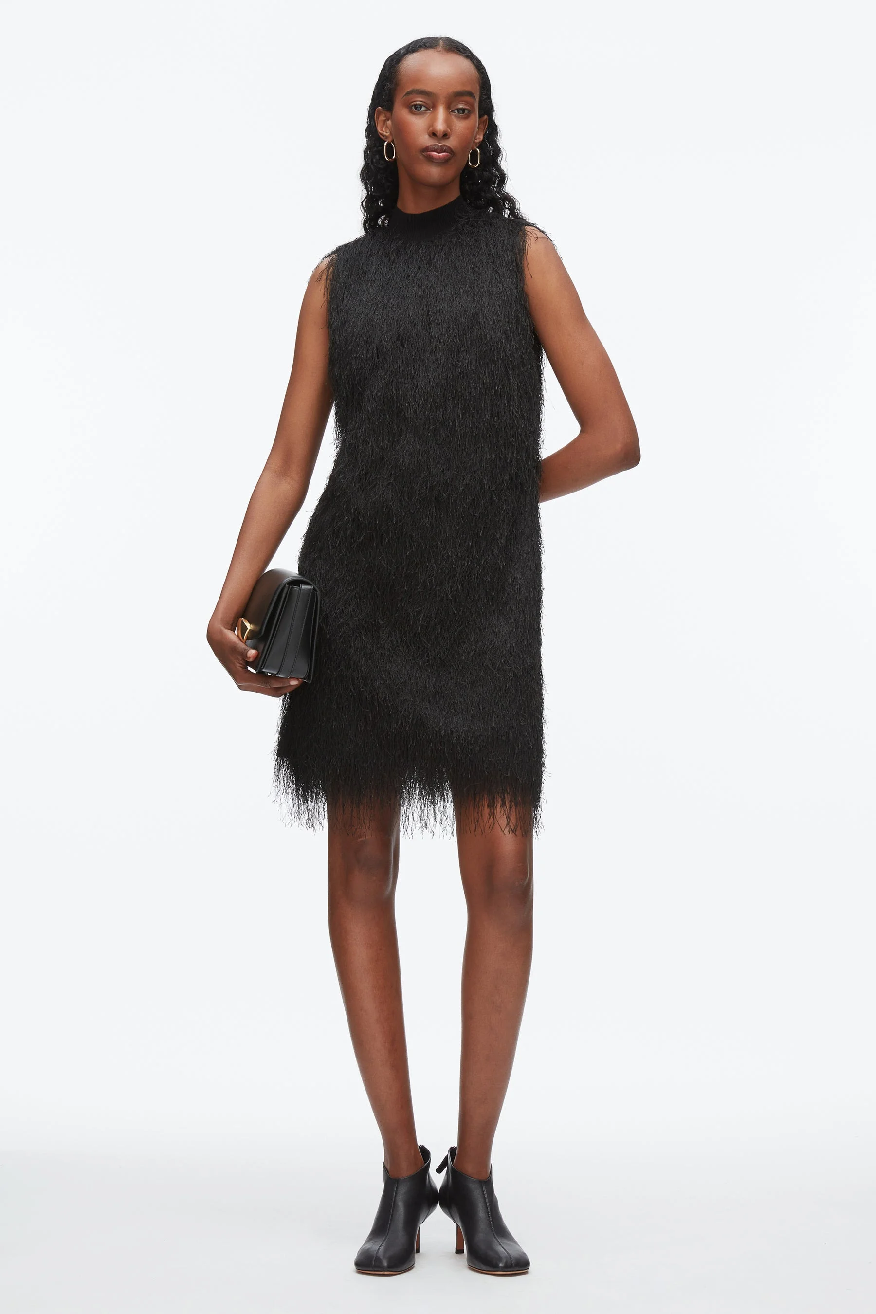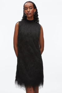 Fringe Mock Neck Shift Dress