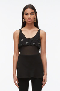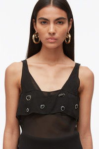 Whimsical gemstones are embroidered on silk chiffon to construct this cami. Offering a layered look with a bandeau panel, it features a snap open side seam slit. - 100% Silk - sleeveless - mid length - Professional dry clean only - Model is 5'10', Bust: 30', Waist: 23', Hips: 34' and wearing a size 4