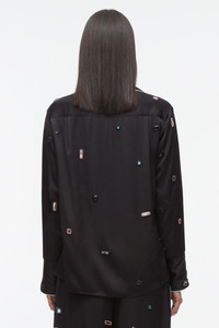An ode to New York's spirit of everyday glamour, the classic PJ set gets an update with playful halo gem embroidery and contrast piping detail throughout. Cut in viscose satin twill, relaxed fit. - 100% Viscose - Bracelet sleeve - long length - Professional dry clean only - Model is 5'10', Bust: 30', Waist: 23', Hips: 34' and wearing a size 4