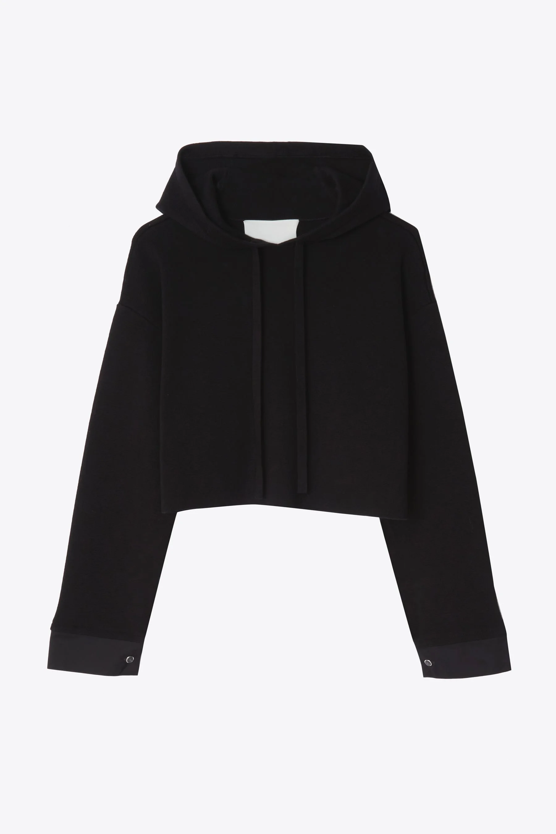 Long Sleeve Cropped Hoodie With Poplin Combo