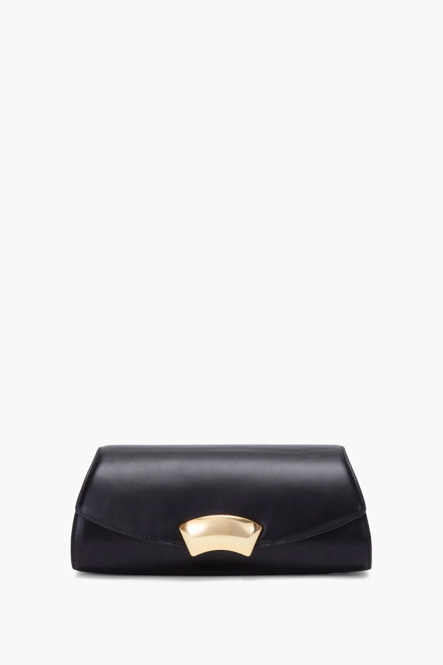 This ID Clutch boasts a structured, trapezoidal silhouette crafted in a shiny, smooth calf leather. A new iteration of our ID series, it has a front flap that secures with a statement gold-tone plaque inspired by chunky ID bracelets. - Smooth leather - Detachable chain shoulder strap - Fold over front with magnetic fastening - Gold-tone metal plaque at front - Internal card slot - Metal feet - Gold-tone hardware - 100% calf leather - 4.5"H x 10.5"W x 4"D - 18.5" top handle drop