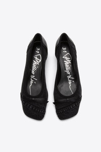 Ladylike with a sense of strength, the ID Ballerina Pump is constructed out of stone washed denim with a suede back. Detailed with leather bow and our crescent shaped block heel. The slanted toe marks the pair as a 3.1 Phillip Lim signature. - 100% Cotton - Outsole: Leather - Lining: Sheep Leather - Heel: 35 MM | 1.4"