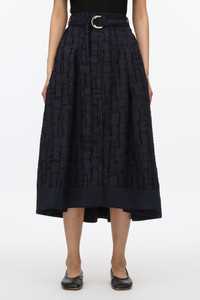 Tough romanticism is the mood for the season, and this full volume circle in our custom abstract grid jacquard exemplifies that. The textural surface and polished gold hardware adds a sense of modernity to the classically feminine silhouette. Wear with our wool boucle knitwear for an instantly chic outfit. - 87% Polyester 13% Acetate - Model is 5'10', Bust: 30', Waist: 23', Hips: 34' and wearing a size 4 - Professional dry clean only