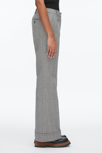 A refined approach to tailoring. These elongating pants feature a subtle flare and are crafted from Italian jaspe wool—yarn-dyed and woven with a mix of three tones to create a softly variegated stripe. The clean waistband and pressed creases enhance the tailored finish, while cuffed hems introduce a relaxed edge. - 48% Wool, 26% Cotton, 26% Polyester - Model is 5'10', Bust: 30', Waist: 23', Hips: 34' and wearing a size 4 - Professional dry clean only