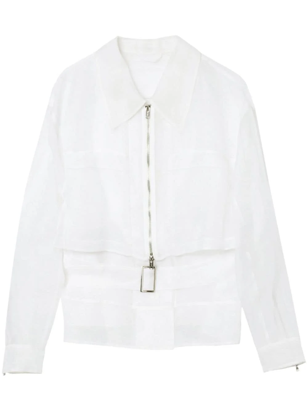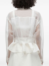 layered belted silk jacket Highlights - Ivory white - Silk - Organza - Layered design - Straight-point collar - Front zip fastening - Belted waist - Long sleeves - Peplum hem Imported Composition Silk 100%