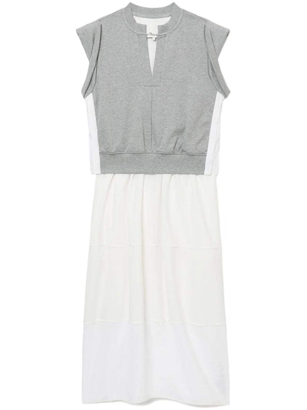 layered jersey-panel midi dress Highlights - Heather grey/white - Cotton - Layered design - Melange-effect jersey panel - Perforated detailing - Round split neck - Short rolled sleeves - Adjustable side waist straps - Tiered poplin skirt - Straight hem - Mid-length Imported Composition Cotton 100%