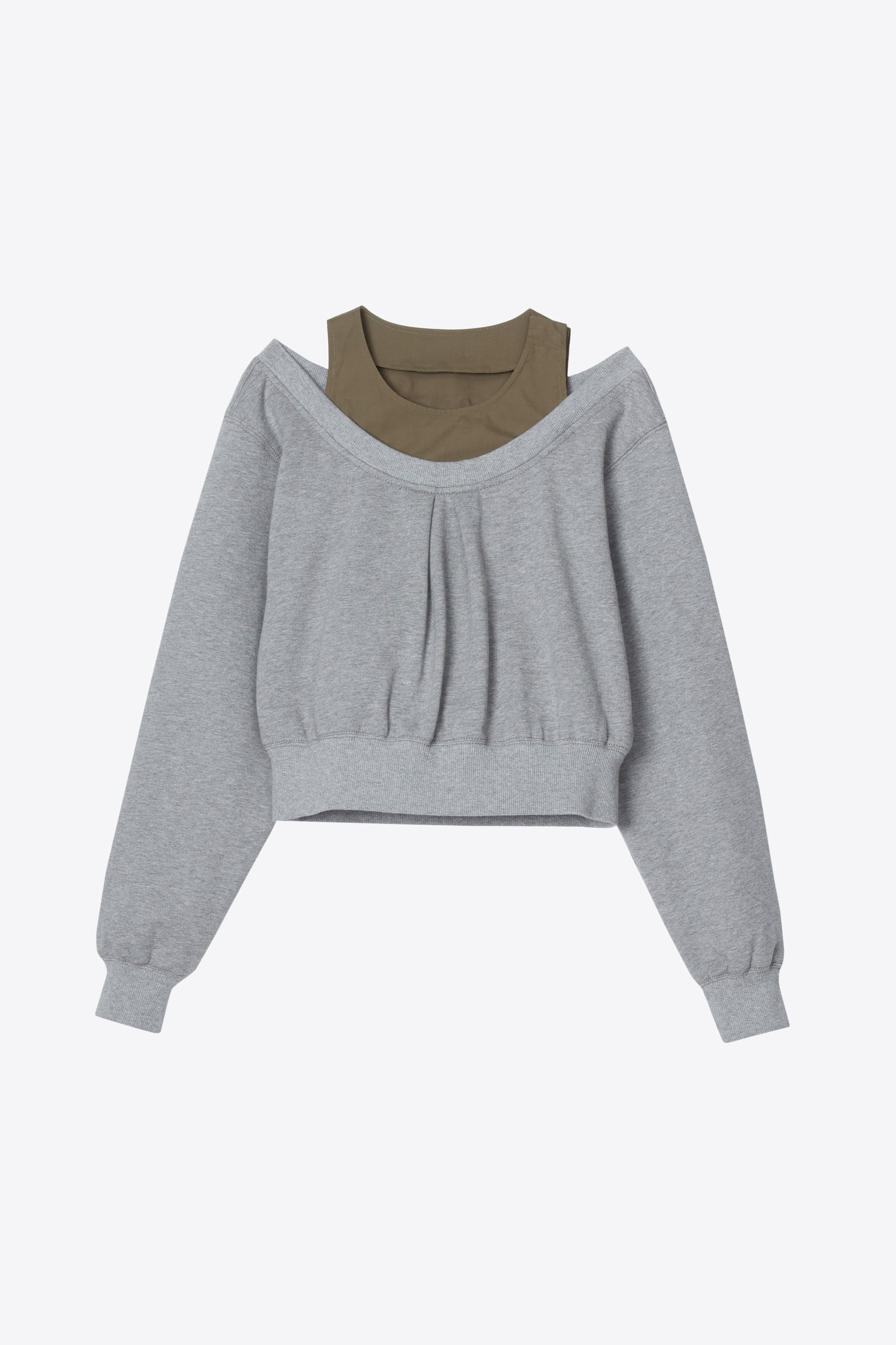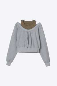 A fresh take on the classic sweatshirt, this ballet-inspired French terry combo top blends elegance and ease. Designed with a softly pleated front and peekaboo shoulder detail, it’s layered over a built-in tank—no styling required. Finished with ribbed cuffs and hem, it delivers all-day comfort with a directional twist. Pair it with cargo pants or a flowing skirt for effortless cool. - 100% Cotton - Model is 5'10', Bust: 30', Waist: 23', Hips: 34' and wearing a size 4 - Professional dry clean only