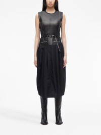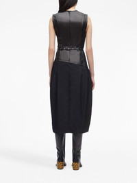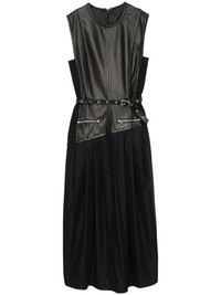 leather pleated midi dress Highlights - Black - Leather - Pleated skirt - Belted waist - Front zip fastening pockets - Rear zip fastening - Round neck - Sleeveless - Mid-length - Flared hem Imported Composition Leather 100%