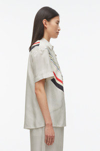 The molding details from our current and former home subway stations of Union Square and Canal is the inspiration behind this striking print. Rendered on silk twill, and cut into a relaxed fit camp shirt. Knotted metal buttons gives it an urban edge. - 100% Cotton - Short sleeve - Mid length - Professional dry clean only - Model Height: 5'10', Bust: 30', Waist: 23', Hips: 34' and wearing a size Small