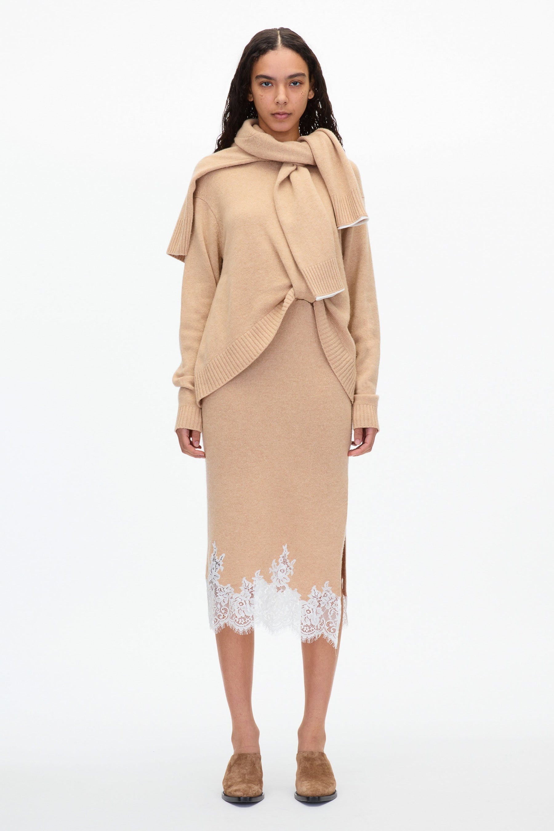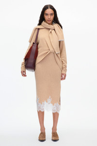 Throw on and go, this cheeky sweater dress is constructed with a french tuck that is perfectly styled. Knitted in a wool viscose blend, it has a lightweight, yet cozy hand feel. Skirt hem is trimmed with scalloped edge. - 47% Wool 38% Viscose 10% Nylon 5% Cashmere - Model is 5'10', Bust: 30', Waist: 23', Hips: 34' and wearing a size Small - Professional dry clean only
