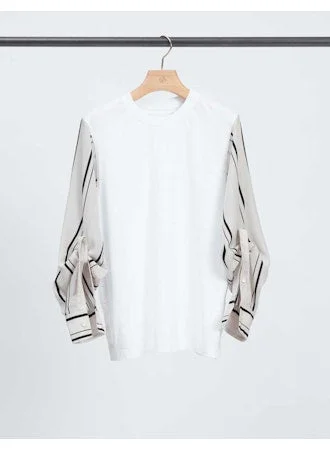 Long Sleeve Tee with Stripe Shirting Sleeves