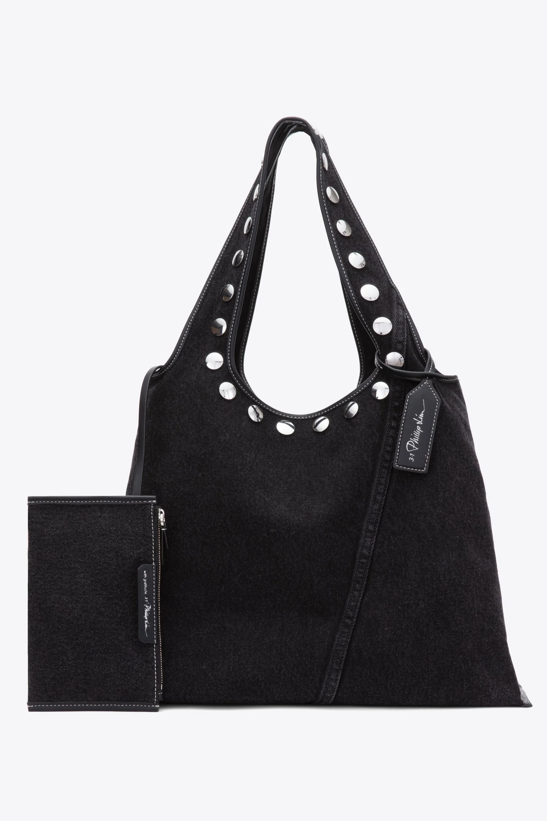The 3.1 Market Tote in washed black denim its sure to be your go to catch-all carry all. Detailed with studded handles, a leather logo tag and an attached interior pouch. Not precious, never fussy, just cool, easy, chic on the go. - 100% Cotton - Lining: 100% Cotton - Height: 21" - Width: 18.5" - Depth: 9" - Handle Drop: 10''