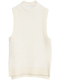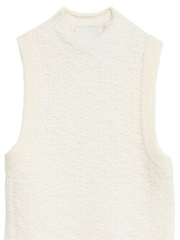 mock-neck wool top Highlights - Ivory white - Wool - Jacquard - Ribbed trim - Mock neck - Sleeveless - Short side slits - Straight hem Imported Composition Wool 100% Washing instructions Dry Clean Only