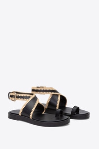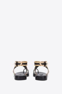 The Naya Raffia Ankle Wrap Sandal is crafted in calf leather, with raffia stitched ankle wrap. Single toe strap. - 100% Cow Leather Upper - Outsole: Synthetic Rubber - Lining: Sheep