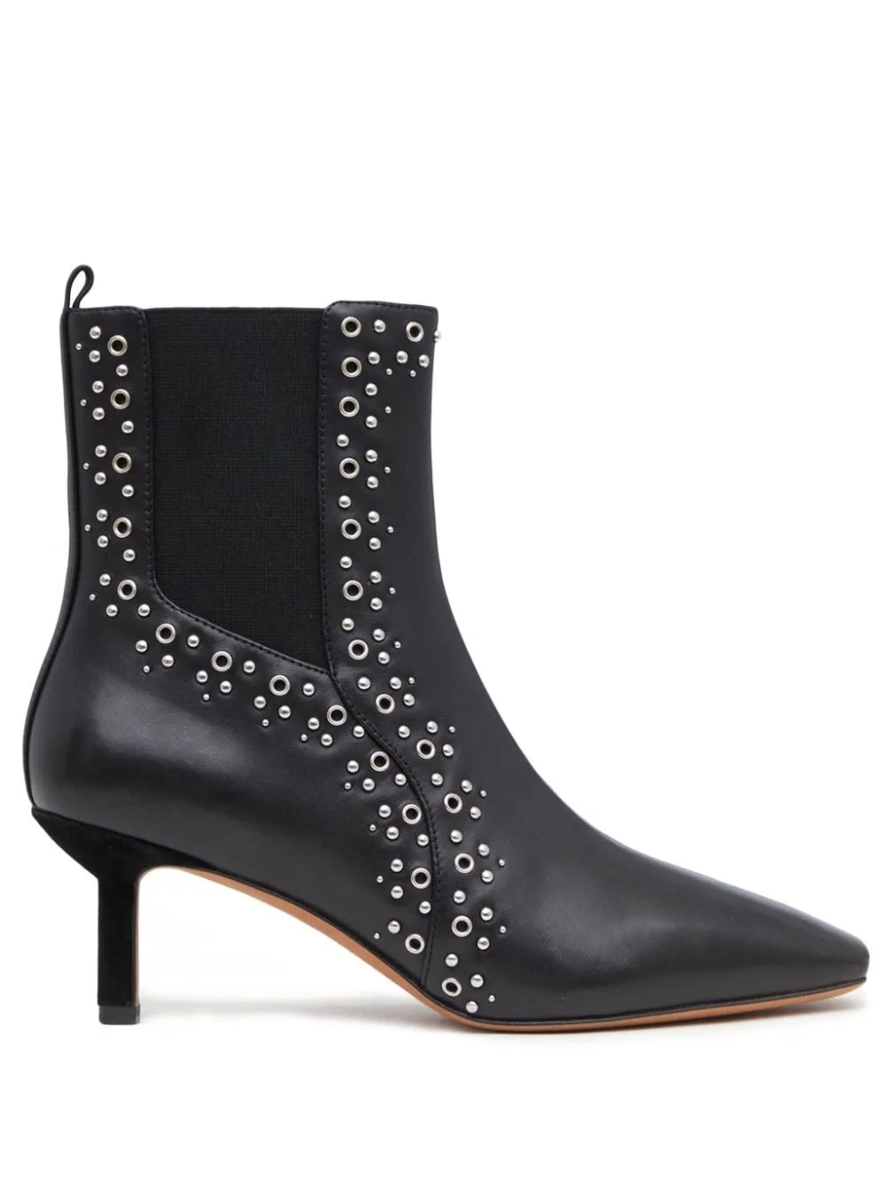 Nell 65mm eyelet-embellished boots Highlights - Black - Calf leather - Eyelet detailing - Pointed toe - Elasticated side panels - Slip-on style - Branded leather insole - Pull-tab at the heel - 65mm stiletto heel Imported Composition Lining: Leather 100% Outer: Calf Leather 100% Sole: Leather 100%