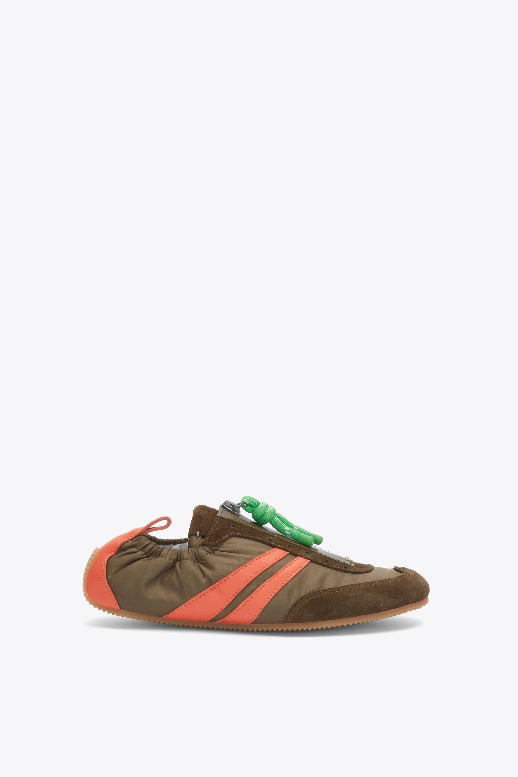 Sleek, sporty, and ready for anything. The On the Go Sneaker is crafted from a mix of smooth nylon and rich suede, combining a lightweight feel with refined texture. Designed with a collapsible heel and elastic back for easy slip-on wear, it moves effortlessly with you. A zipper-and-lace hybrid closure adds a utilitarian twist, finished with contrast stripes and vibrant pops of color for a modern edge. Perfect for days that don’t slow down. - 44% Polyester, 20% Sheep Leather, 29% Calf Suede, 7% Synthetic - Outsole: Rubber - Lining: Sheep