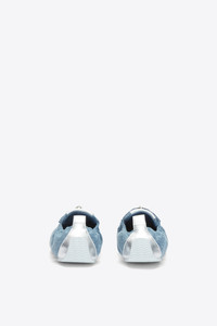 Effortless and adaptable, the On the Go Sneaker reimagines casual wear through a refined, textural lens. Crafted from lightweight denim with suede and metallic accents, it offers a relaxed yet polished sensibility. The elasticized heel ensures a slip-on fit that moves with you, while the zipper-and-lace closure adds a touch of utilitarian ease. A soft blue palette with contrast white stripes brings laid-back versatility—perfect for everyday motion. - 54% Cotton Denim, 20% Sheep Leather, 19% Calf Suede, 7% Synthetic - Outsole: Rubber - Lining: Sheep