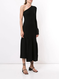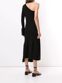 one-sleeve ribbed cutout dress 3.1 Phillip Lim proves that it's all in the detail with this one-sleeve ribbed dress. Made from a wool-blend, this elegant piece has been designed with a flared cuff, cut-out detailing to the side and a softly-ruffled skirt panel. Subtle perfection. Highlights - Black - Wool-blend - Ribbed knit - Cut-out detailing - One-sleeve design - Flared cuff - Ruffled skirt panel - Asymmetric hem - Mid-length Imported Composition Wool 55%, Viscose 33%, Nylon 10%, Spandex/Elastane 2% SIZE & FIT Model measurements Height 5 ft 9 in(1.76 m) Bust/Chest 29.13 in(74 cm) Hips 33.07 in(84 cm) Waist 22.83 in(58 cm) FittingInformation This piece fits true to size. We recommend you get your regular size Designed for a close fit at the bust, waist and hips Made with a mid-weight fabric Washing instructions Dry Clean Only