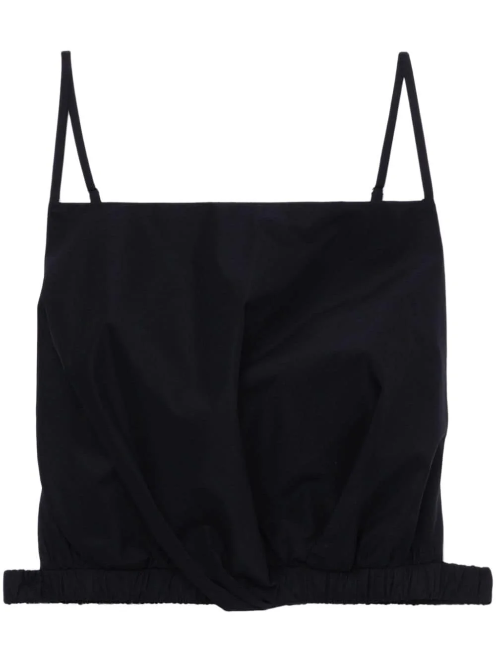 open-back ruched crop top Highlights - Black - Cotton blend - Ruched detailing - Square neck - Adjustable spaghetti straps - Open back - Elasticated hem - Cropped Imported Composition Cotton 70%, Polyester 30%
