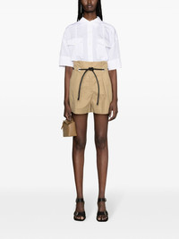 Origami belted shorts Highlights - Khaki - Stretch-cotton - Pleat detailing - Metal eyelet detailing - Detachable waist belt - High-waisted - Concealed front button, hook and zip fastening - Two side inset pockets - Rear button-fastening jetted pocket - Straight hem - Thigh-length Imported Composition Cotton 97%, Elastane 3%