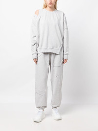 panelled cotton track pants Highlights - Light grey - Cotton - Panelled design - High-waisted - Elasticated waistband - Two side inset pockets - Straight leg - Elasticated ankles Imported Composition Cotton 100% SIZE & FIT Model measurements Height 5 ft 9 in(1.76 m) Bust/Chest 31.1 in(79 cm) Hips 35.03 in(89 cm) Waist 24.4 in(62 cm) FittingInformation Designed for a tapered fit, these trousers allow for a close fit at the waist and a loose unrestricted fit over the leg with a closer fit towards the ankle The elasticated waist allows for a comfortable fit Made from a midweight non-stretch fabric, this piece offers minimal elasticity when worn This piece fits true to size – take your usual size