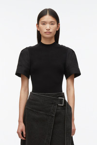 Compact Rib Top with Contrast Sleeves