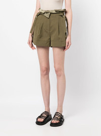 Paperbag cotton-linen shorts Highlights - Olive green - Cotton-linen blend - Eyelet detailing - Bow detailing - High waist - Concealed front fastening - Thigh-length Imported Composition Cotton 70%, Linen/Flax 30% SIZE & FIT Model measurements Height 5 ft 10 in(1.77 m) Bust/Chest 31.88 in(81 cm) Hips 33.85 in(86 cm) Waist 24.01 in(61 cm) Washing instructions Hand Wash