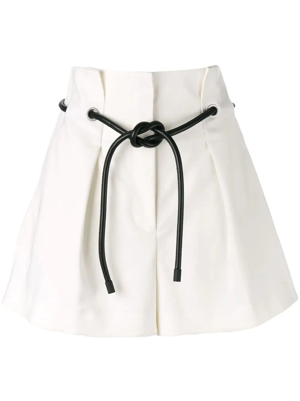 origami pleated shorts Created in an antique-white hue, 3.1 Phillip Lim's origami shorts are cut with a high paper-bag waist and concealed front fastening. A black leather knotted belt cinches in the waist to emphasize the garment's voluminous silhouette. Highlights - Antique white - Cotton - Tied waist - Belt loops - Concealed front fastening - Two side inset pockets - Rear flap pocket Made in Italy Composition Outer: Cotton 53%, Polyamide 43%, Spandex/Elastane 4% Washing instructions Dry Clean Only